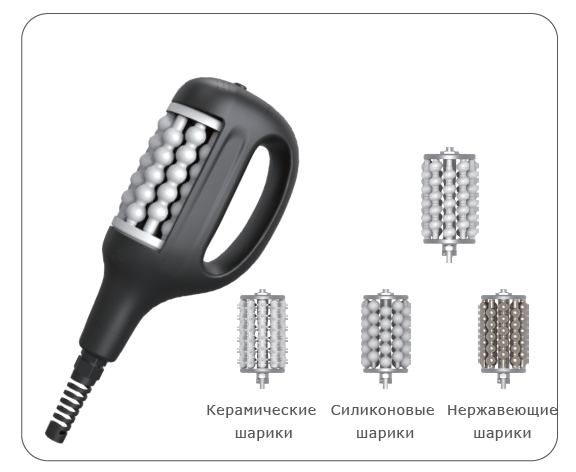1.Аппарат оснащен двумя манипулами - по телу и по лицу - и 7 насадками для обработки различных зон тела и лица;