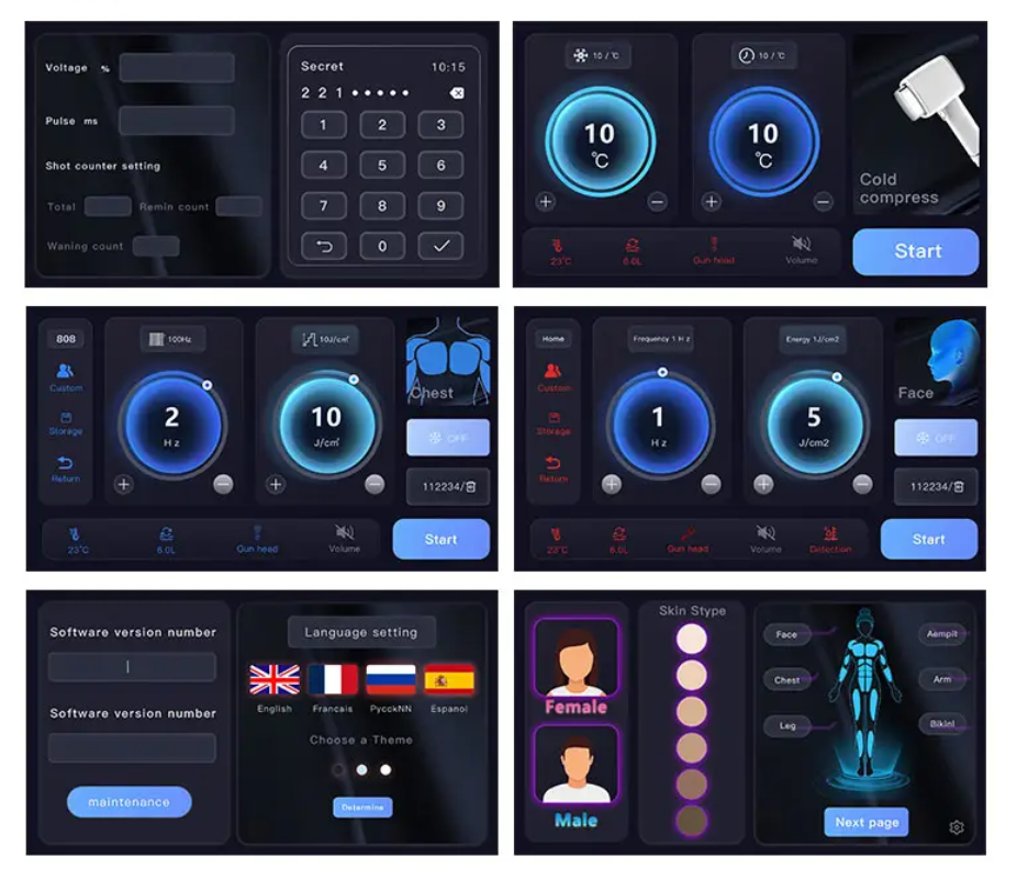 ВХОДНАЯ МОЩНОСТЬ 3800 Вт ВЫХОДНАЯ МОЩНОСТЬ 1800 Вт НАПРЯЖЕНИЕ 90-130 V 200-260 V 50-60 Гц, 10 А ДЛИНА ВОЛНЫ 808/ 755+808+1064 нм ЭНЕРГИЯ СВЕТОВОГО ПОТОКА 1-155 Дж/ кв.см. ДЛИТЕЛЬНОСТЬ ИМПУЛЬСА 10-300 ms РАЗМЕР ОКНА 12*36, 12*24, 12*12, 6 мм ЧАСТОТА 1-10 Гц СИСТЕМА ОХЛАЖДЕНИЯ водяная+воздушная+TEC ЭКРАН 15,6', сенсор -