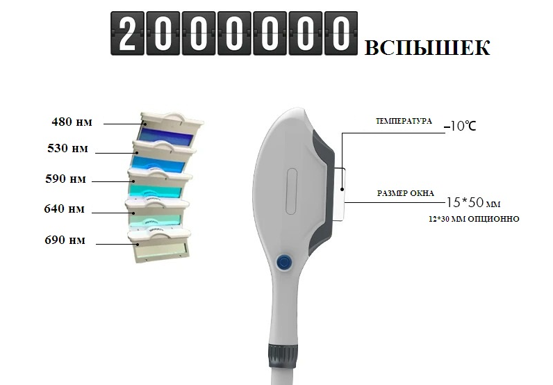Ресeрс манипулы 200 000 вспышек. В комплекте 5 светофильтров для различных процедур и охлаждением окна.Манипула изготовлена из качественного материала.