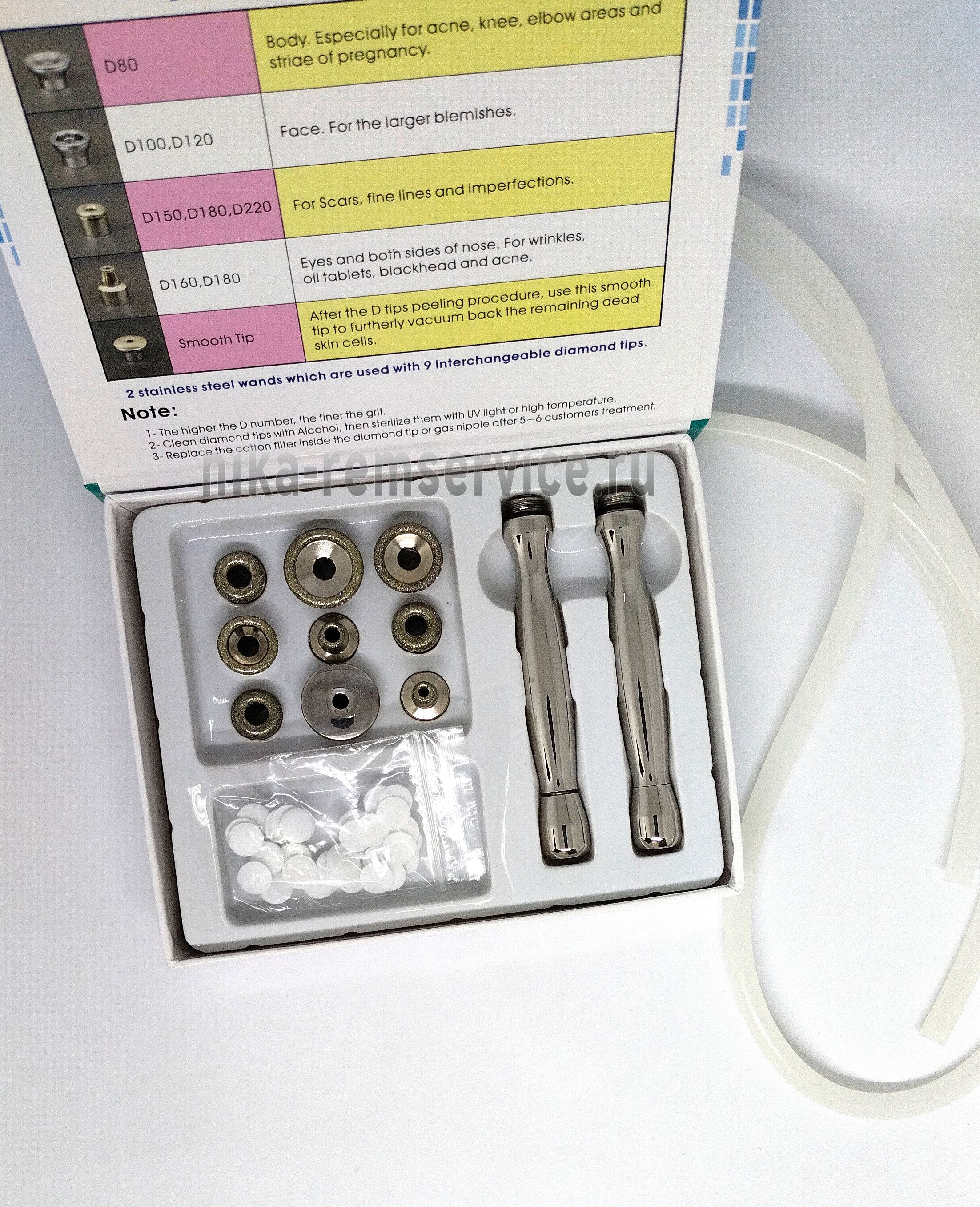 МИКРОДЕРМАБРАЗИЯ представляет собой шлифовку кожи микрокристаллами и является одним из самых деликатных методов механического пилинга кожи. Она является щадящим, безопасным и очень эффективным методом решения возрастных изменений и проблем кожи. Микродермабразия и дермабразия отличаются только глубиной шлифовки кожи. Насадки, используемые для процедур микродермабразии: D80, D100, D120, D150, D160, D180 (2 вида), D220.